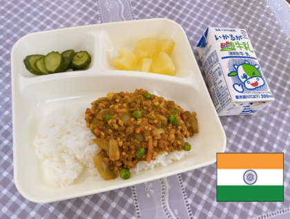 昨日は、ヤンニョムチキンやナムルなどの韓国朝鮮の料理が登場しました。今日は、インドから来たカレーライスです。いつもの水分のあるカレーライスではなくひき肉を使ったキーマカレーライスです。