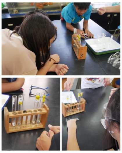 6年生は、理科の学習で「金属にうすい塩酸を加えたときの変化」を鉄とアルミを水とうすい塩酸の中に入れて実験し、それぞれ変化を確かめました。