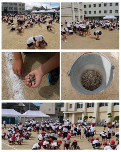 最後に、運動場の石拾いを全校児童で行い、自分たちが演技や競技をする場所をきれいにしました。