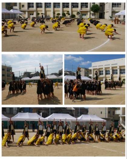 高学年は、はっぴを着て、頭には捻りはちまきをして演技をしました。「ソーラン」の声も大きくたくましくなって、本番が近づいていることを感じました。
