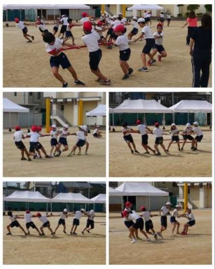 5年生は棒引きです。早く棒に到達できた組が有利になるため、「よーい」の掛け声で駆け出してしまうぐらい「勝ちたい」気持ちが全身から感じ取れました。