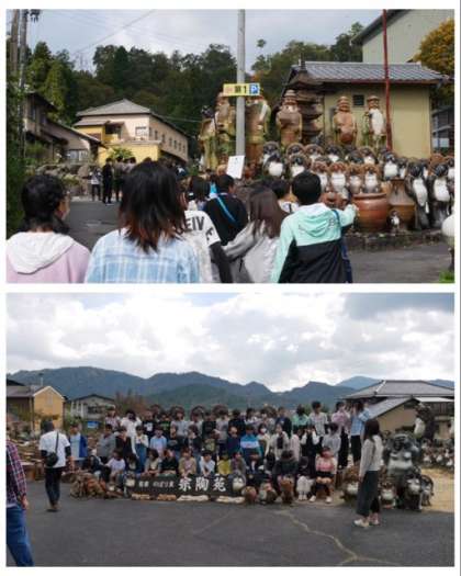 第1目的地の信楽宗陶苑に到着しました。まず記念写真を撮影して、これから陶器作りです。