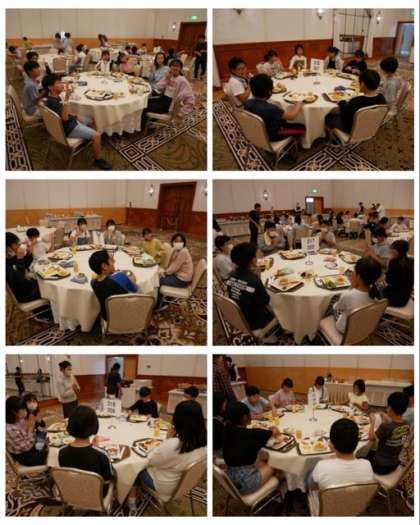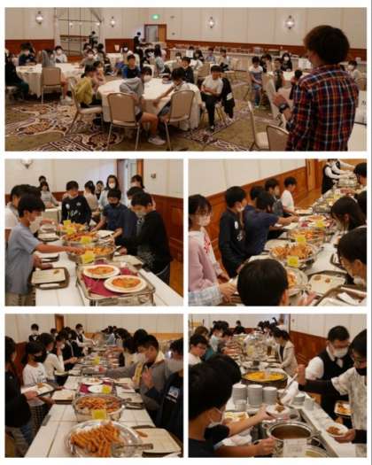 ホテルの夕食は、ブュッフェ形式です。子どもたちの好きそうなメニューがたくさんあり、デザートも充実していて、みんな満足するまでいただいていました。