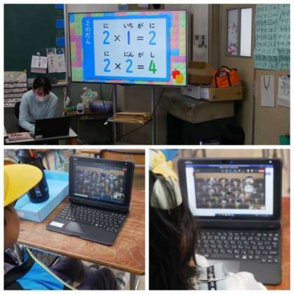 2年生は、双方向オンライン学習で九九をみんなで学習しました。