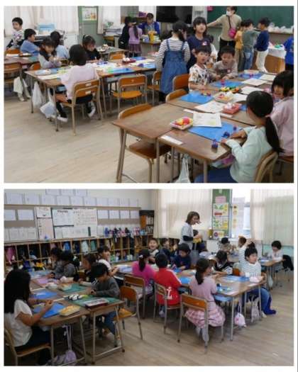 1年生は、作品展に向けていろいろな色の紙粘土を使って工作を仕上げています。