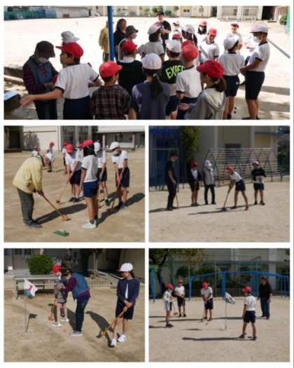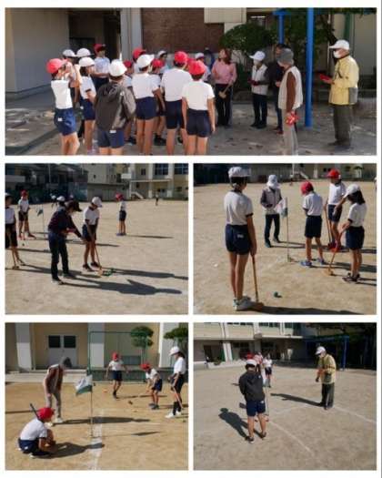 5年生は、グラウンドゴルフの仕方を地域の方から教えていただき、グラウンドゴルフを楽しみながら地域の方々との交流を深めることができました。