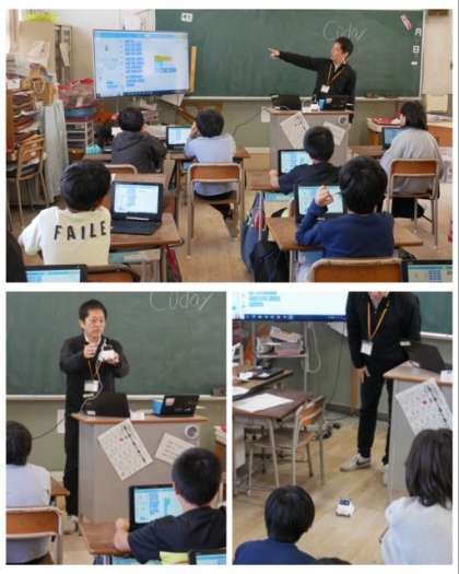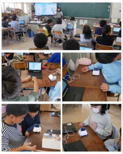 5年生は、ICT支援員さんからロボットカーを動かすプログラミングについて教えていただきました。プログラミングでロボットの目を上に向けたり、下を向かせたり、前へ進ませたりしました。
