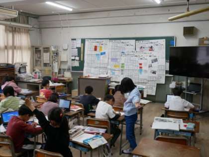 2年生は、生活科で行った町たんけんをもとに、校区マップをグループで作成中です。