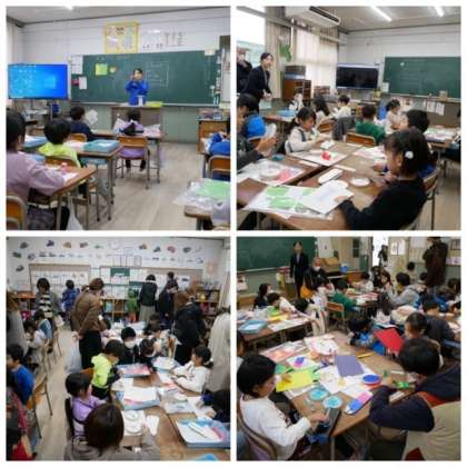 1年生は、生活科の学習で、かみざらコロコロの動くおもちゃを保護者の方にもお手伝いいただいて作成しました。