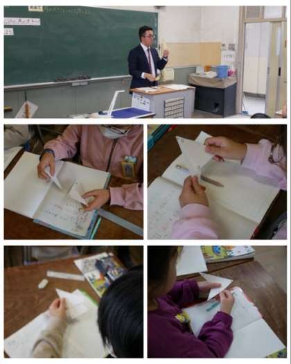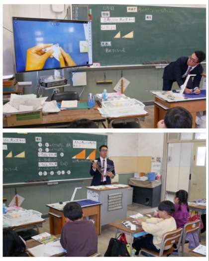 3年生は、算数科の学習で三角形の角の大きさ比べをしました。