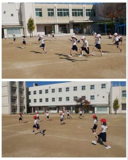 1年生は、体育科のなわとびで、かけっことびをしました。