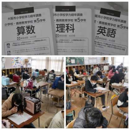 大阪市経年調査の2日目は、算数、理科です。それに加えて、5・6年生は、英語についても実施しました。