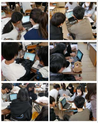 6年生は、算数科の「並べ方と組み合わせ方」の学習で、リレーの順番の決め方が何通りあるのかを表や樹形図などを使ってグループで考え、一人一台学習者用端末の発表ノートにまとめて発表しました。