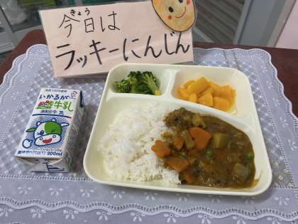 カレーライスの中には、れんこん・だいこん、サラダのブロッコリーも冬が旬の野菜です。