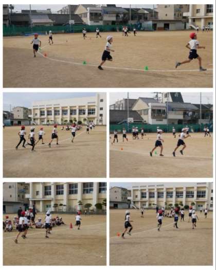 3年生は、運動場で持久走をしました。自分のペースを守って一定のリズムで走りました。