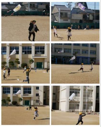 みんな運動場を一生懸命に走ってたこをあげていました。