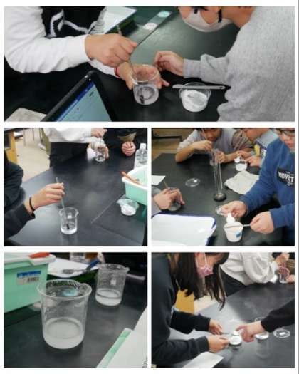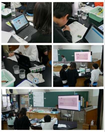 5年生は、理科の「もののとけ方」の学習で、食塩やミョウバンを使って一定の水に混ぜていき、溶ける量に限りがあるのかを確かめました。