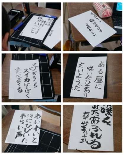 6年生は、自分で考えた俳句を毛筆で表しました。
