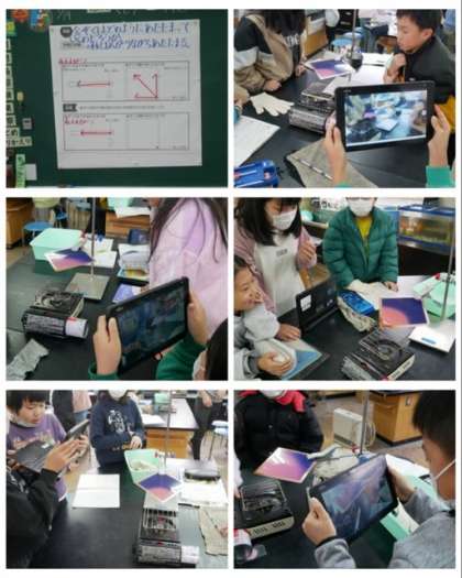 青色だったテープが、温まるとピンク色に変化していく様子を動画撮影しながら観察しました。