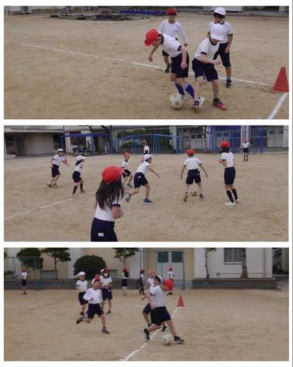 3年生は、体育科でラインサッカーをしました。みんな一生懸命にボールを追いかけていました。