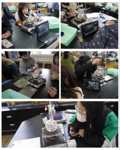 4年生は、理科の学習で水を温めるとどうなるのかを実験しました。フラスコに入れた棒温度計の温度の上がり具合を確かめながら、沸騰するまでの様子を観察しました。