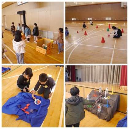 1年生は、2月15日(木)に予定している幼稚園の園児と楽しく交流するため、当日に遊ぶまと入れや金魚すくい、輪投げ、動くおもちゃなどのお店の説明や遊び方などをリハーサルしていました。当日の交流が楽しみです。