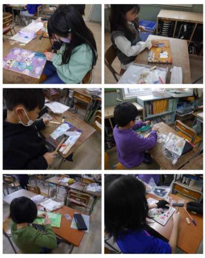 3年生は、かなづちを使ってビー玉ゲーム板に釘を打ち付けていました。もう、完成間近です。