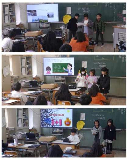 3年生は、自分たちで調べた外国のことについてプレゼンします。