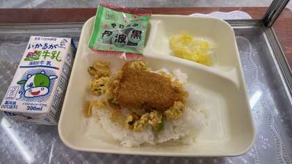 ★カツ丼(卵除去食) ★はくさいの甘酢あえ ★ソフト黒豆 ★ 牛乳