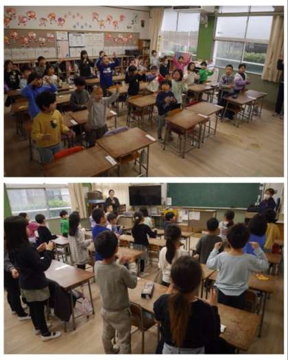 1年生は、学習参観で発表する手話付きの歌の練習をしていました。