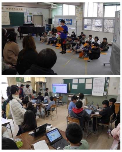 5年生は、総合的な学習の時間で、1組は「It's SHOW TIME」2組は、「プログラミングで多角形をかいてみよう」の学習の様子を見ていただきました。