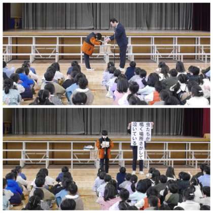 今日の全校朝会で、2月23日に行われた「子ども句会」の入選者の表彰をして、入選した俳句を披露しました。これからも、感じたことを俳句で表してもらいたいです。