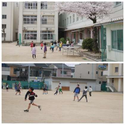 休み時間のチャイムが鳴ると、早速、運動場に飛び出してみんなでかけっこをしたり、ドッジボールをしたりして遊ぶ姿が見られました。