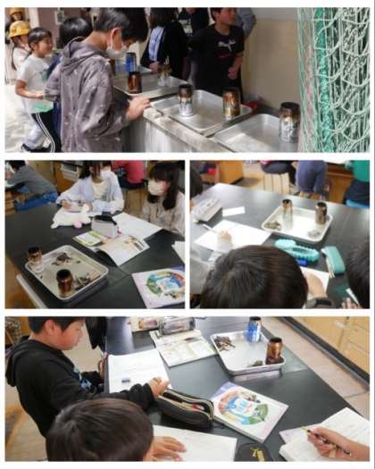 6年生は、理科でものを燃やした時の様子を穴を上に開けた缶と下に開けた缶で燃え方の違いを観察しました。