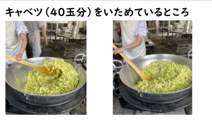程よい歯ごたえをのこしながら作りたいのですが、給食は衛生面の観点から、温度を測って75度以上になっていることと確認しないといけません。すごくあつあつでできている見えてもなかなか、75度以上になっていないこともあります。