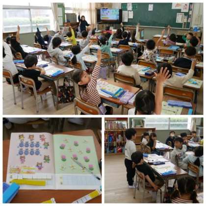 1年生は、算数科で「どちらが多い」の学習をしました。