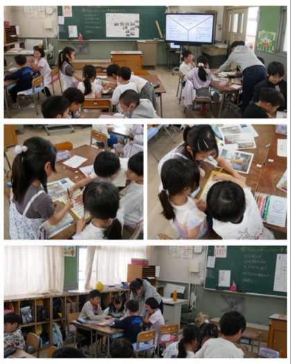 2年生は、1年生を学校案内するために、紹介する部屋ごとに分かれて計画を立てていました。