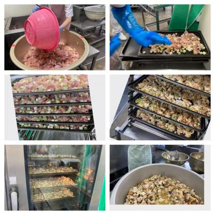 焼きとりは下味をつけた鶏肉をスチームコンベクションオーブン(大阪市では、焼き物機と呼んでいます。)で焼きます。スチームコンベクションオーブンは焼きたり蒸したり、できる機械です。