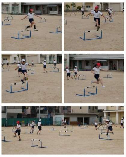 リズムよくハードルを跳び越すために足の運びをどのようにすればいいか考えながら跳んでいました。