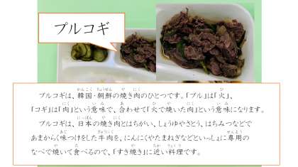 ★プルコギ★とうふとわかめのスープ★きゅうりの甘酢づけ★ご飯★牛乳