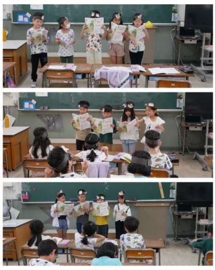 2年生は、国語科「風のゆうびんやさん」のお話をグループで役割分担して音読発表をしました。