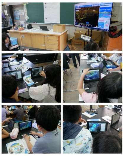 5年生は、理科で雲の動きについて学習しています。一人一台学習者用端末で雨雲レーダーで雲の動きを確かめるなど、一人一人が課題を見つけて調べていました。