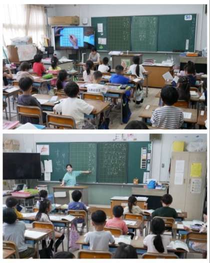1年生は、国語科で濁点のあるひらがなを使った言葉集めや、任意に並べられたひらがな表から言葉を見つけるゲームをしながら楽しく学習しました。