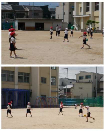 2年生は、体育科で、二人組になってボールなげをしました。片手で上手に投げられる人が増えてきました。