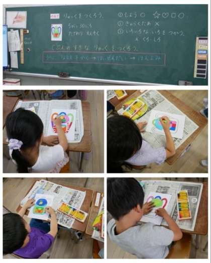 1年生は、図画工作科で、パスを使って自分の好きなリュックをデザインしました。