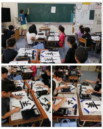 4年生は、書写の時間に「羊」の字を止めや払いに気をつけて書きました。
