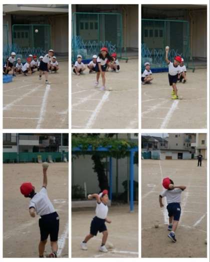 2年生のソフトボール投げの様子です。しっかりと腕を振って投げていました。