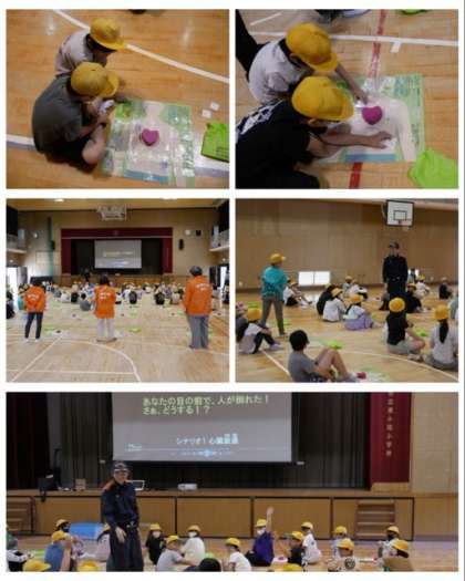高学年は、消防署の方から救命入門講習で心肺蘇生法や、AEDの使い方などを教えていただきました。講習後には、修了参加証を交付してもらいました。