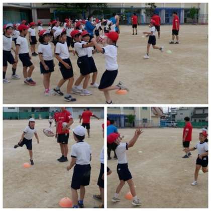 3年生は、トップアスリート夢授業でNTTドコモレッドハリケーンズのみなさんからラグビーを教えていただきました。