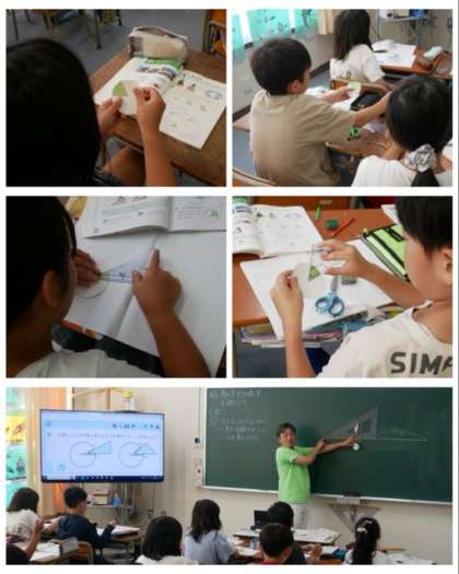4年生は、算数科で角の大きさの学習をしました。三角定規を使って、三角定規と同じ大きさの角を作りました。
